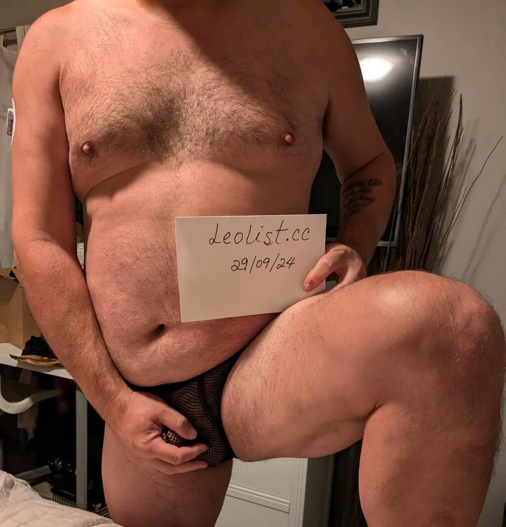 Him: 6'3, Bi & handsome, dad bod, average, cut, orally inclined, top.