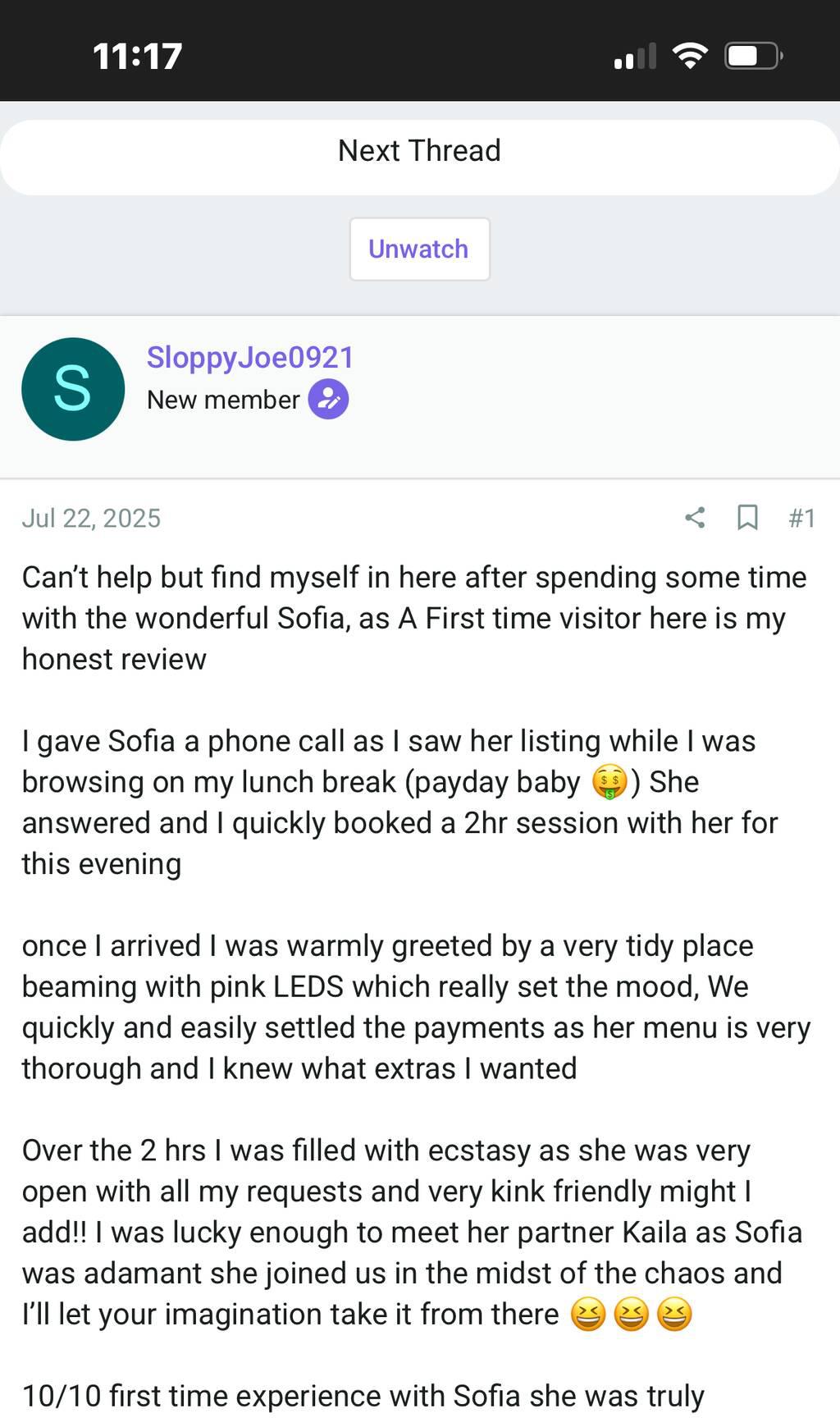 Sofia is coming on Wednesday afternoon. 28th Jan