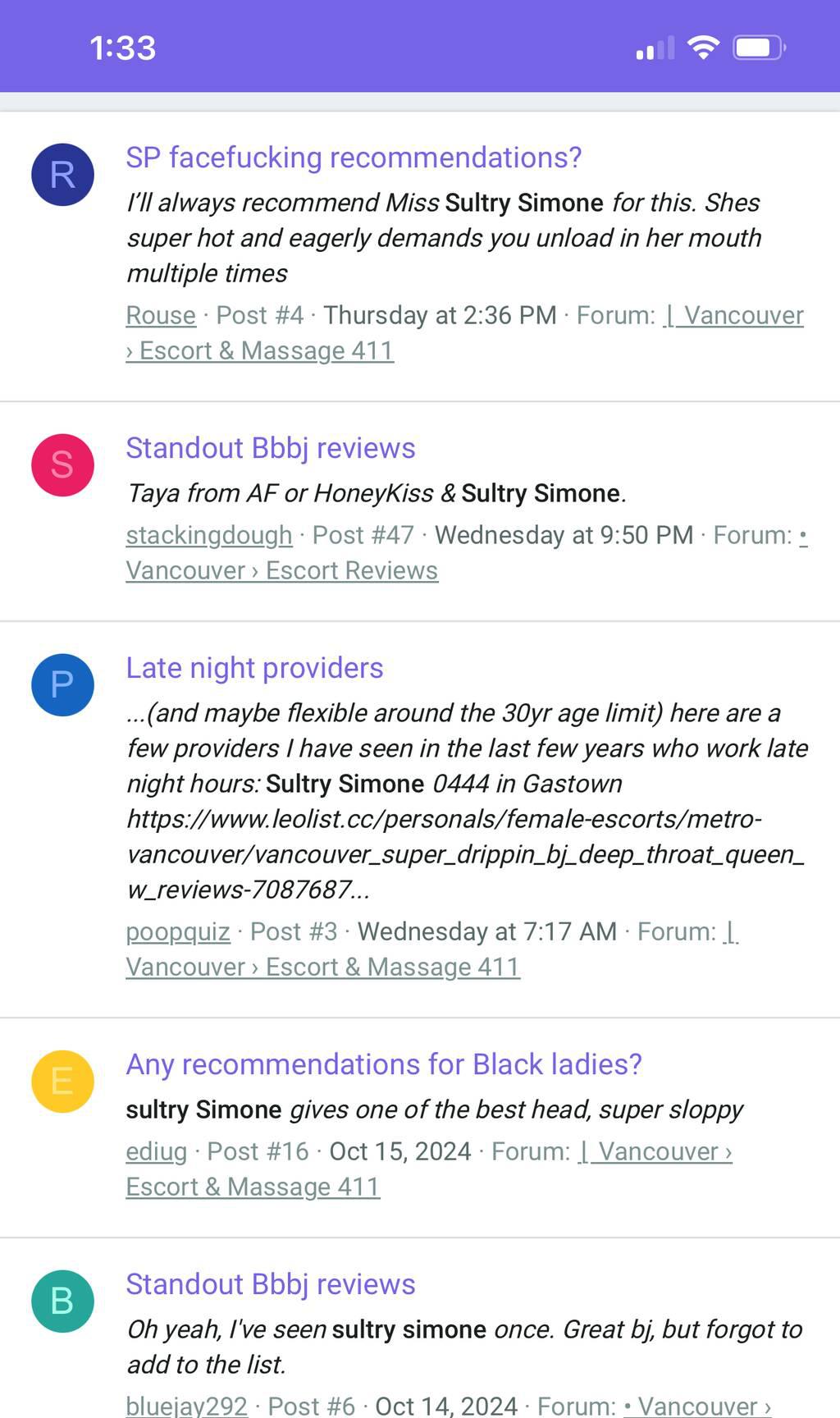 Look me up PER8Â Sultry Simone 0444 or Sultry Simone 9271