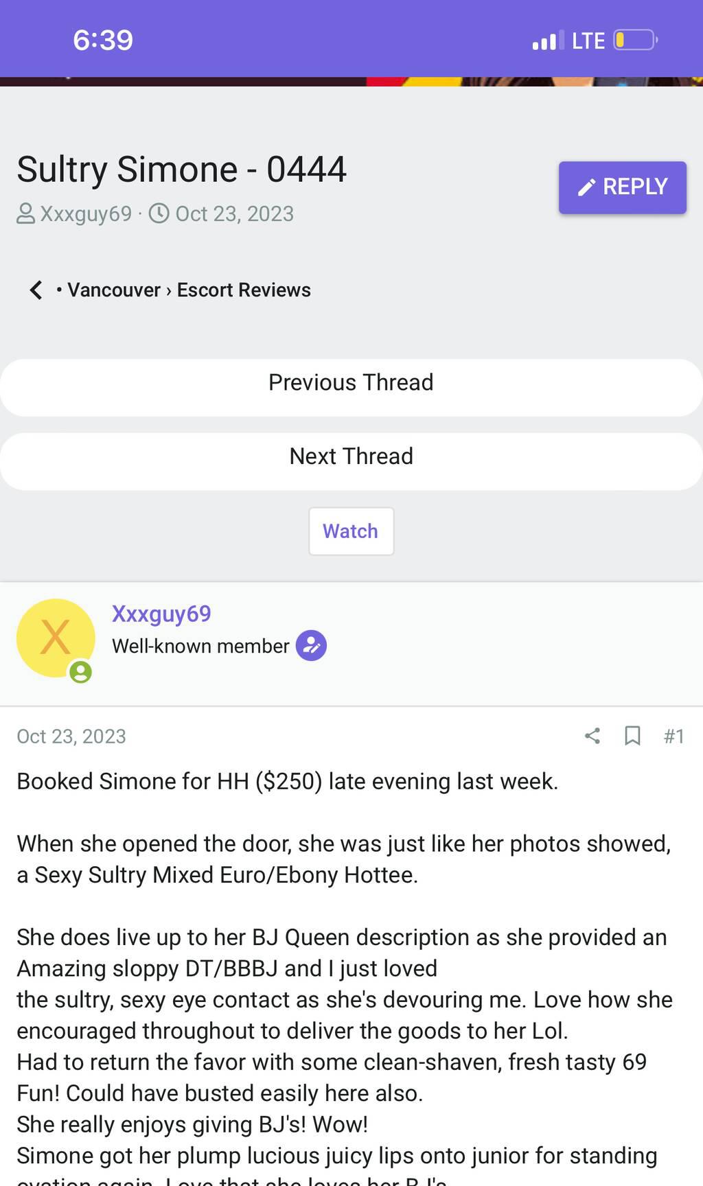 My name is Sultry Simone I am all Natural Courtesan which makes me the Creme De La Creme..LOW VOLUME which makes our session a memorable one.Â