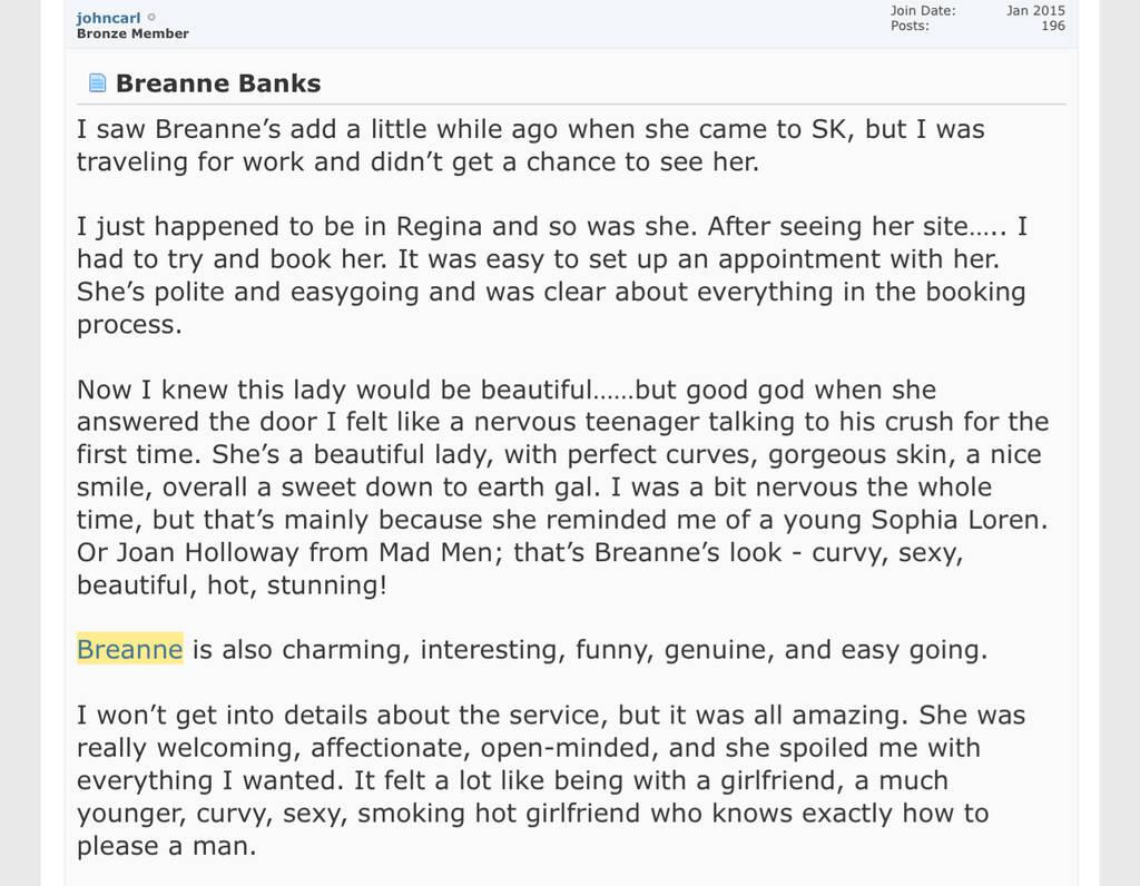 Hello gentlemen, my name is Breanne Banks