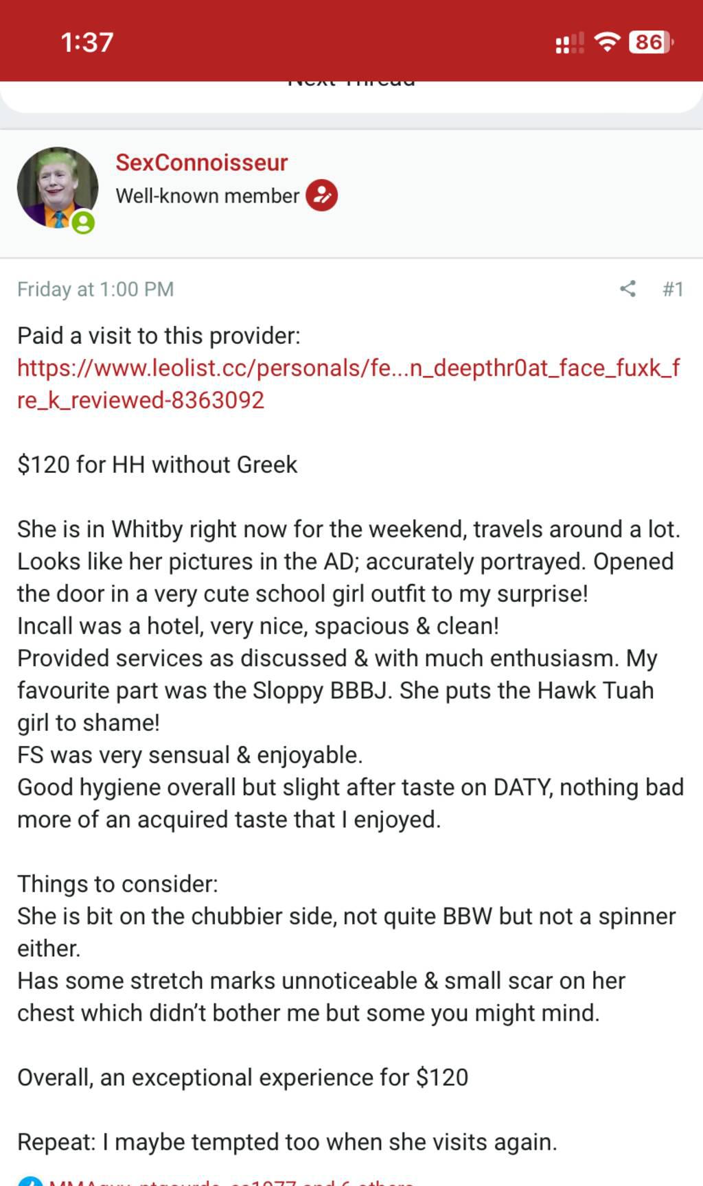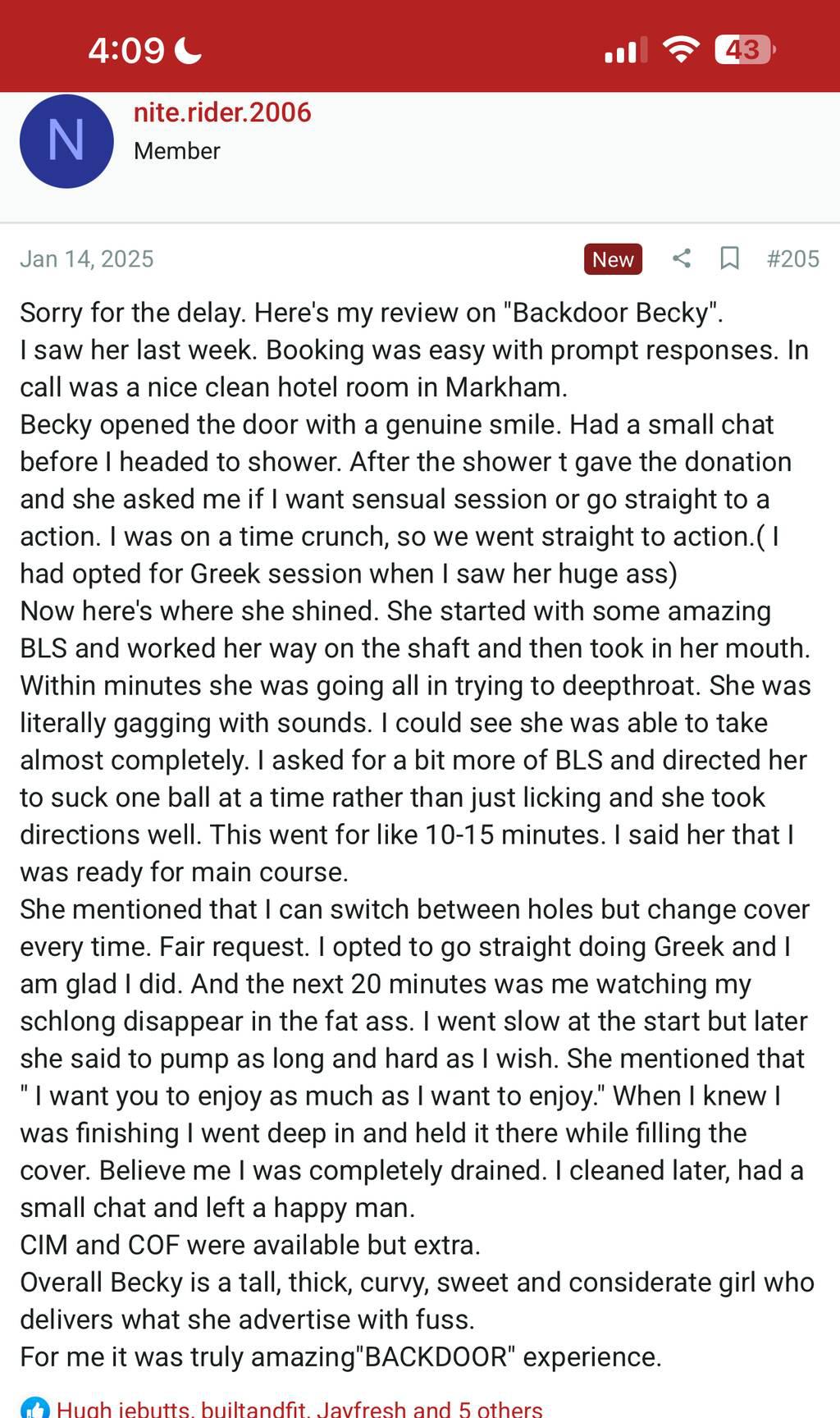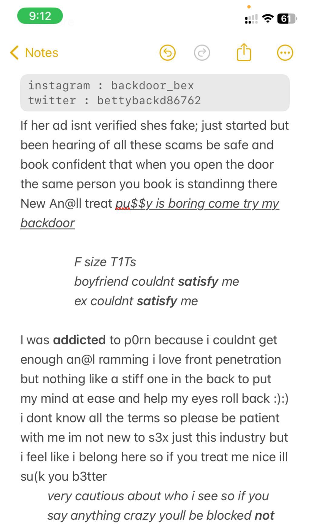 i go through all of my texts, but i don't have time to go back and forth i have a decent amount of reviews to let you know I'm not a scam! my services are elite ; my blow jobs on a scale of 1-10 are 69 ;) rates will soon be increasing ; so book for these prices and enjoy them while you can