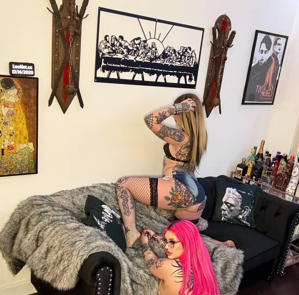 Two opposites, a tall, pierced,blonde punk rocker with a bratty attitude for days and a pink goth bimbo doll with curves that just wont quit..