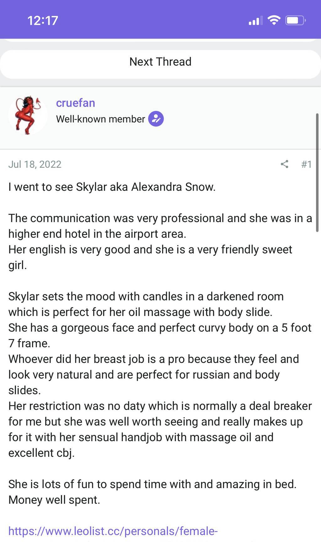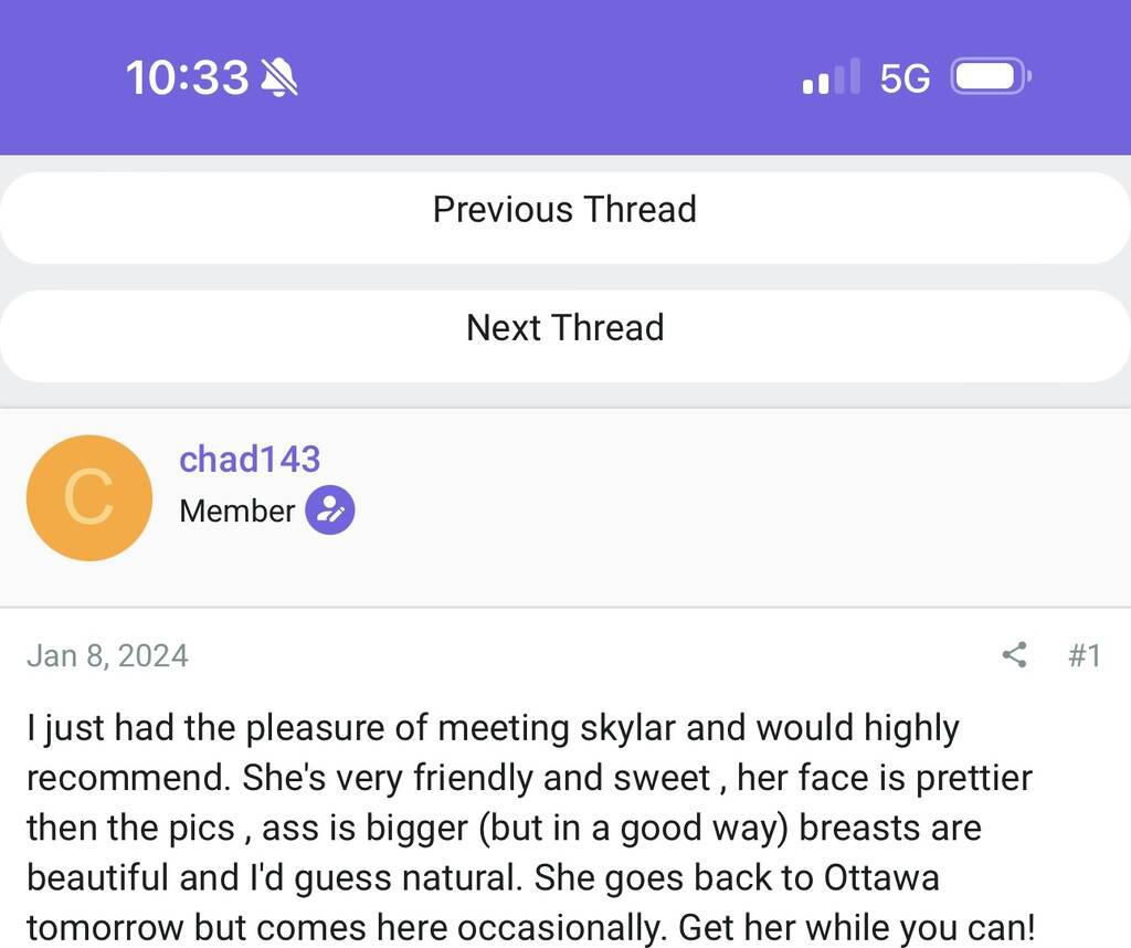 When you message me please start with a short introduction of yourself : Hello, my name is (name). I am (age) years old and (ethnic background). I am currently seeking (incall or outcall) for (specific period of time desired).